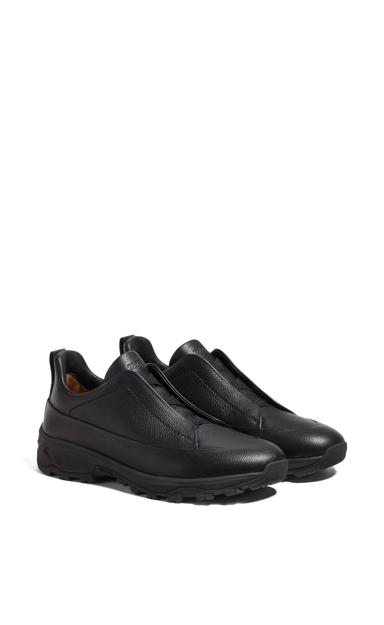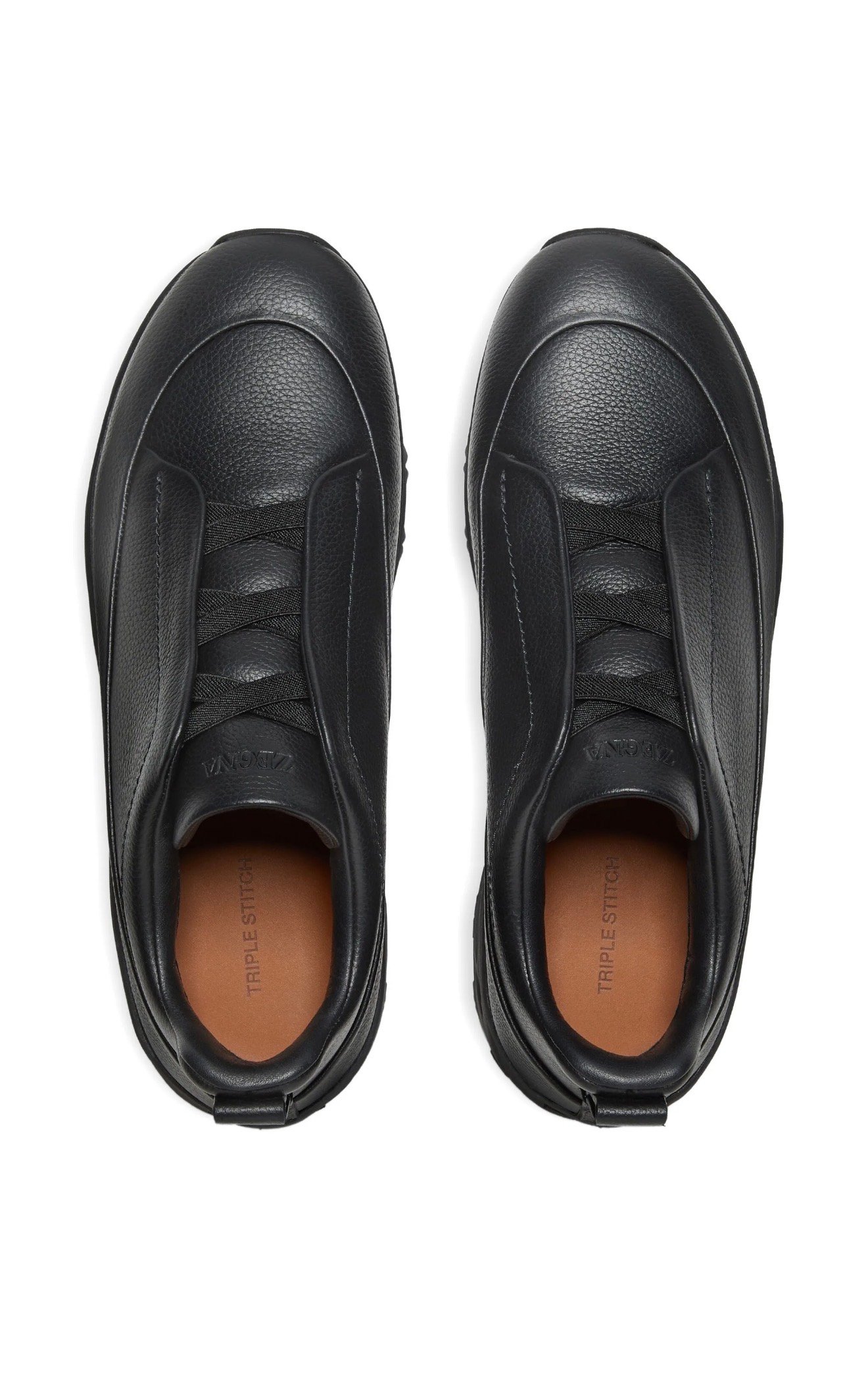 This black grained leather Triple Stitch™ Monte sneaker is a seamless fusion of modern elegance and year-round reliability. Its signature triple-crossed elastic detailing ensures an easy slip-on fit, while celebrating ZEGNA’s legacy of fine craftsmanship. Lined in Foliage-colored leather and embellished with our signature 232 Road Brand Mark on the heel tab.